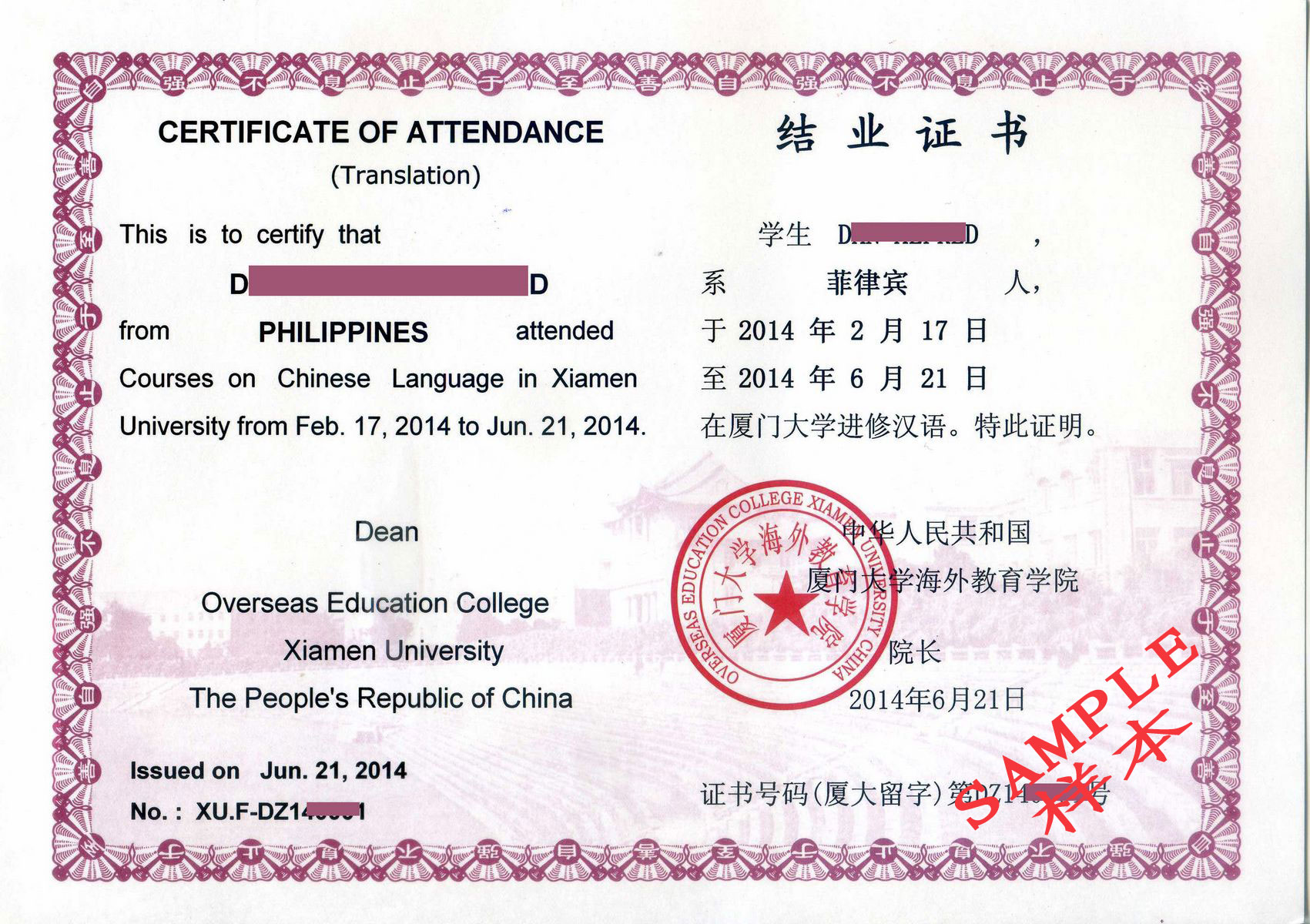 Students who complete their study and meet the respective requirements can apply for certificates from OEC or Xiamen University.