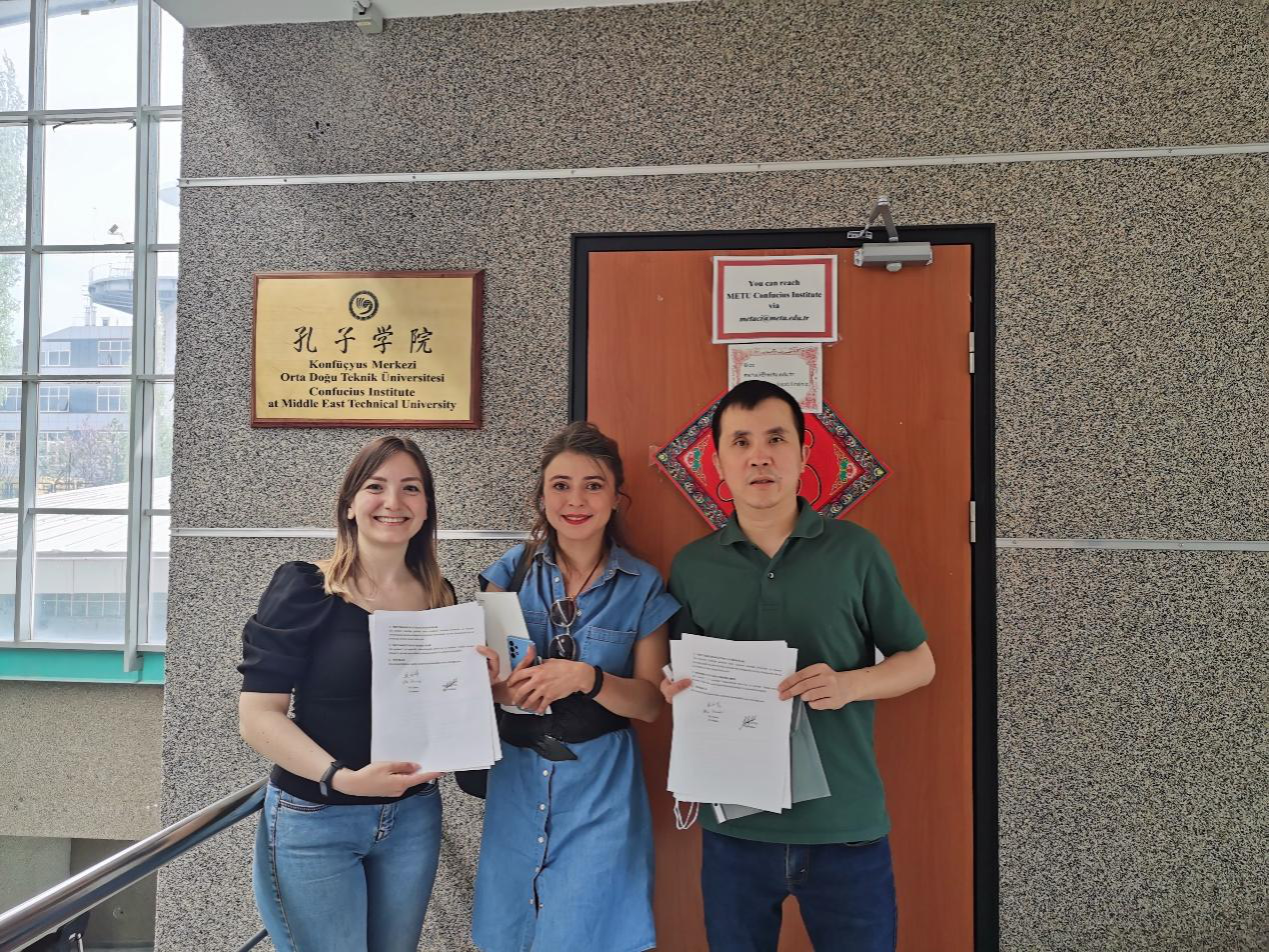 On April 28th, 2022, the representative Chinese language teachers from Ayranci High School of Ankara (Ayrancı Anadolu Lisesi, Ankara) visited the Confucius Institute at Middle East Technical University, Turkey (METU CI) and signed a cooperating protocol about offering more academic support in Chinese language teaching. A few days ago, Chinese Director of METU CI, Wu Tianxi and local volunteer teacher Wang Lifeng have visited Ayranci High School of Ankara. On their visit, they discussed with the president of Ayranci High School, Melike YETIM about the Chinese language education given to Ayranci High School and about what can be done in the following years. METU CI will support Chinese language and culture education to the high school and more effective academic support will be taken to deepen and expand the future cooperation.