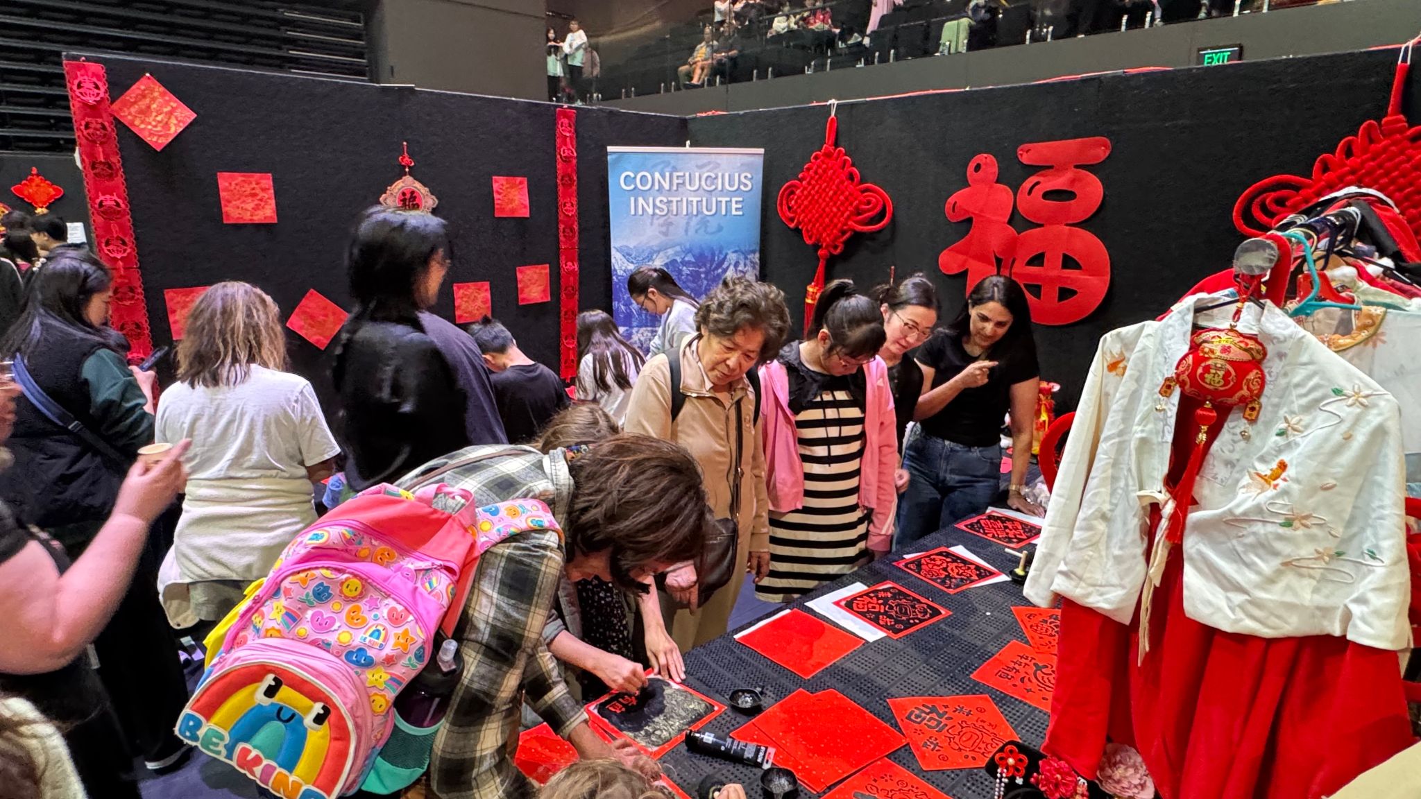 On the local time of February 22nd, the Lunar New Year Fair hosted by the Wellington City Council of New Zealand was held at Wellington TSB Arena. The Confucius Institute at Victoria University of Wellington (VUW CI) was invited to participate in the fair, setting up two interactive projects: traditional Chinese costume experience and New Year rubbings. The rubbing patterns integrate traditional auspicious elements with new ideas for the Year of the Horse, and the costume experience covers various styles with additional children's styles. The fair's stage featured traditional Chinese performances such as dragon and lion dances and face-changing, as well as characteristic programs from various Asian countries including Japanese Taiko Drumming and Thai dances, achieving the integration of diverse cultures. The event attracted a large number of citizens with high popularity, which not only conveyed Chinese New Year blessings but also built a bridge for cross-cultural communication, promoting cultural exchanges and integration between China, New Zealand and other Asian countries.