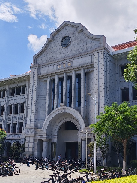 Kunluan Building continues the typical feature of "wearing a Western-style suit and a Chinese hat" (a combination of a Western-style structure and a Chinese-style roof). Its roof adopts a simplified form of the double-eave gabled roof, covered with red cylindrical tiles, embodying traditional charm. The main structure features modern red brick walls and stone decorations, with neatly arranged windows and clean lines. As part of the main building complex, Kunluan Building follows the symmetrical layout principle of "one main building with four auxiliary structures." It is connected to Xuewu Building via corridors, forming an organic whole. The basement level of Kunluan Building houses a café, study areas, and a parking lot.