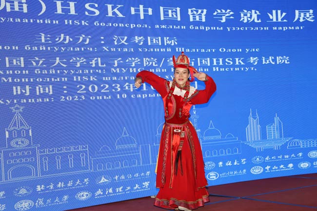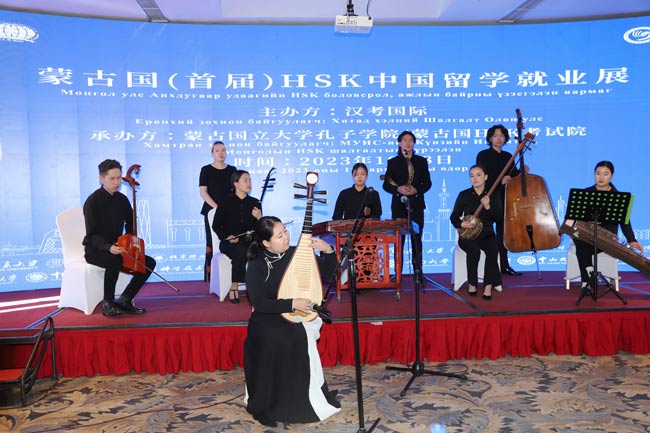 8日,由中国教育部中外语言交流合作中心、汉考国际主办,蒙古国立大学孔子学院/蒙古国HSK考试院承办的蒙古国首届HSK中国留学就业展在乌兰巴托成功举办。来自北京大学、清华大学、复旦大学、中国科学技术大学等21所中国“双一流”高校和HSK MOCK,以及华为技术(蒙古)有限责任公司、东胜石油(蒙古)有限公司、中国能建-葛洲坝蒙古有限公司、顺丰蒙古分公司等15家大型中资企业前来参展。