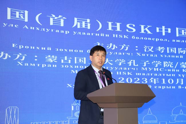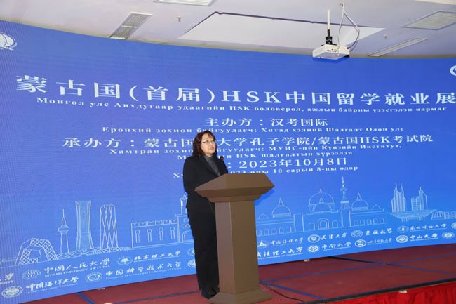 蒙古国立大学副校长巴特扎尔嘎拉在致辞中表示,近年来,以蒙古国立大学孔子学院为代表的中蒙中文教育合作事业充分发展,在学生培养、学术研究、教材研发等领域都取得了一系列成就。本次留学就业展能进一步推动中蒙人文教育合作的深入发展,推动中文教育合作事业的进步。