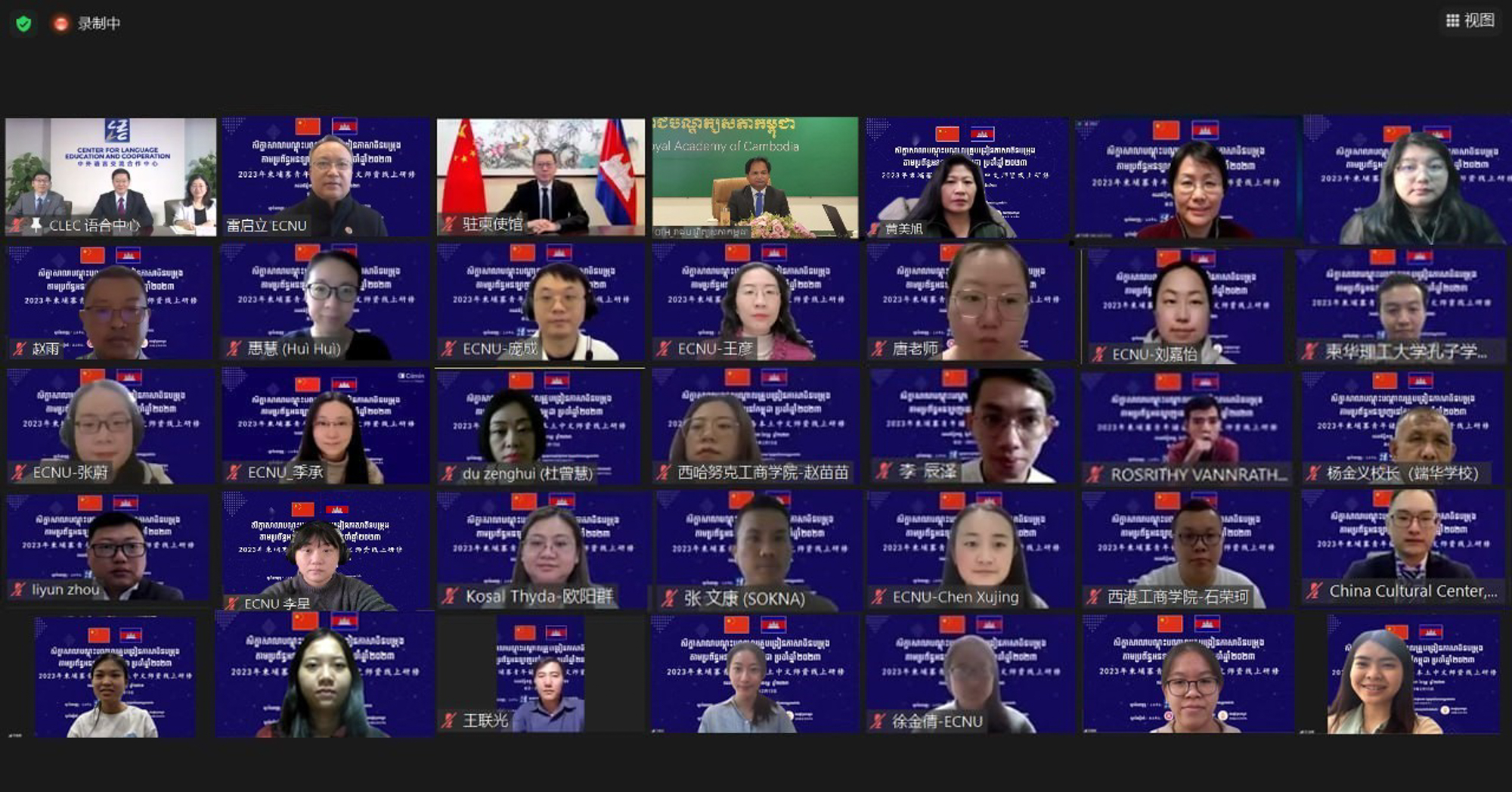2月13日,由教育部中外语言交流合作中心主办、华东师范大学国际汉语教师研修基地承办的2023年柬埔寨本土储备青年中文师资线上研修开班仪式举行。中外语言交流合作中心副主任胡志平、华东师范大学副校长雷启立、中国驻柬埔寨大使馆文化参赞林瑞华、柬埔寨皇家科学院秘书长杨博出席开班仪式并致辞。