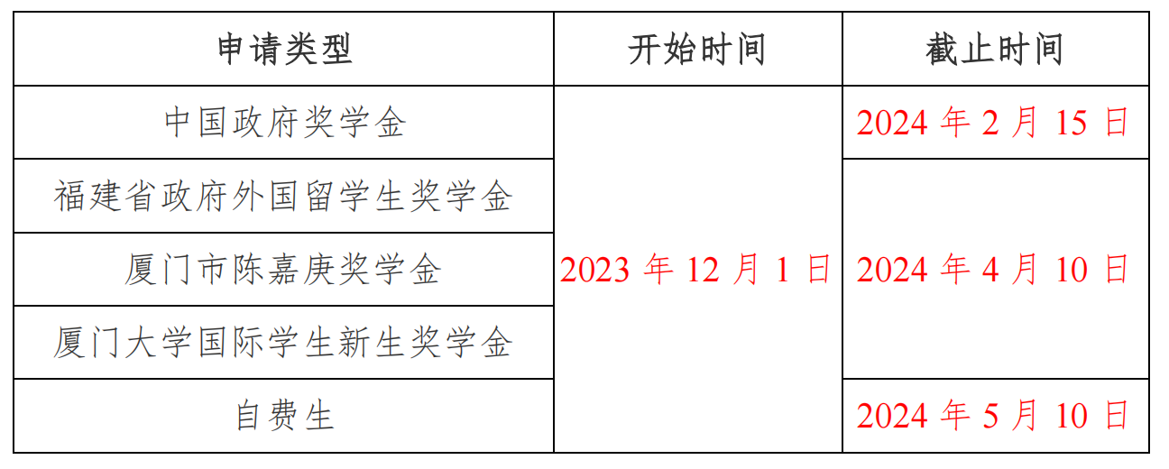 面向部分中国高校直接遴选和招收的优秀外国青年学生,厦门大学受理机构编号:10384。学生须在规定申请时间内在我校申请系统(application.xmu.edu.cn)提交入学申请和奖学金申请,还必须登录国家留学基金委“来华留学管理信息系统”报名(studyinchina.csc.edu.cn)。
