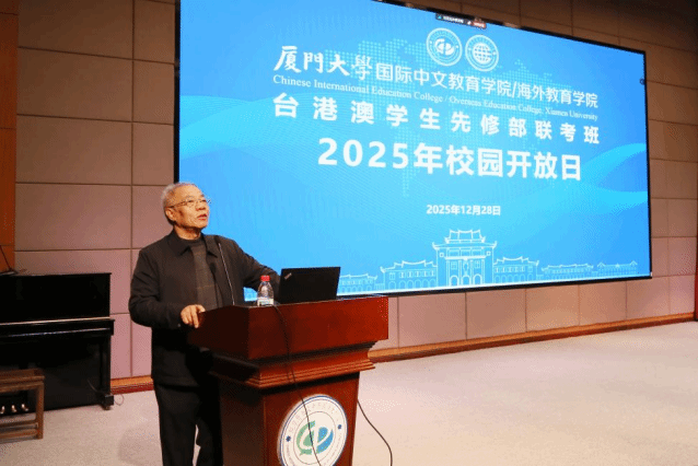 2025年12月28日,学院台港澳学生先修部联考班校园开放日在翔安校区举行。此次校园开放日共有200余名港澳台学生及家长到场参加,另有部分学生及家长通过直播线上参与。学院党委副书记李启忠、先修部科任教师、学生管理科老师出席本次活动,招生科负责人黄建军老师主持开放日宣讲活动。