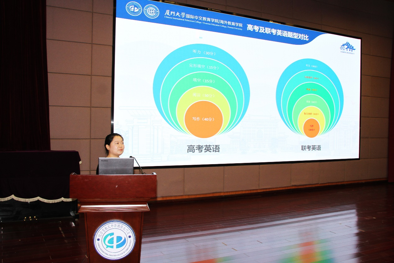 潘超青从台港澳学生先修部办学历史、教学团队、课程设置、特色优势等方面作了详细介绍。学院有着30年的联考办学经验,积累了宝贵的教学资源和学习材料,近年来取得了令人可喜的成绩,帮助许多学子圆梦“双一流”大学。她还向大家展示了往届同学的学习感想,环境优美的德旺图书馆、倾囊相授的老师们、还有美味可口的食堂菜肴都是同学们难以忘却的厦园记忆。