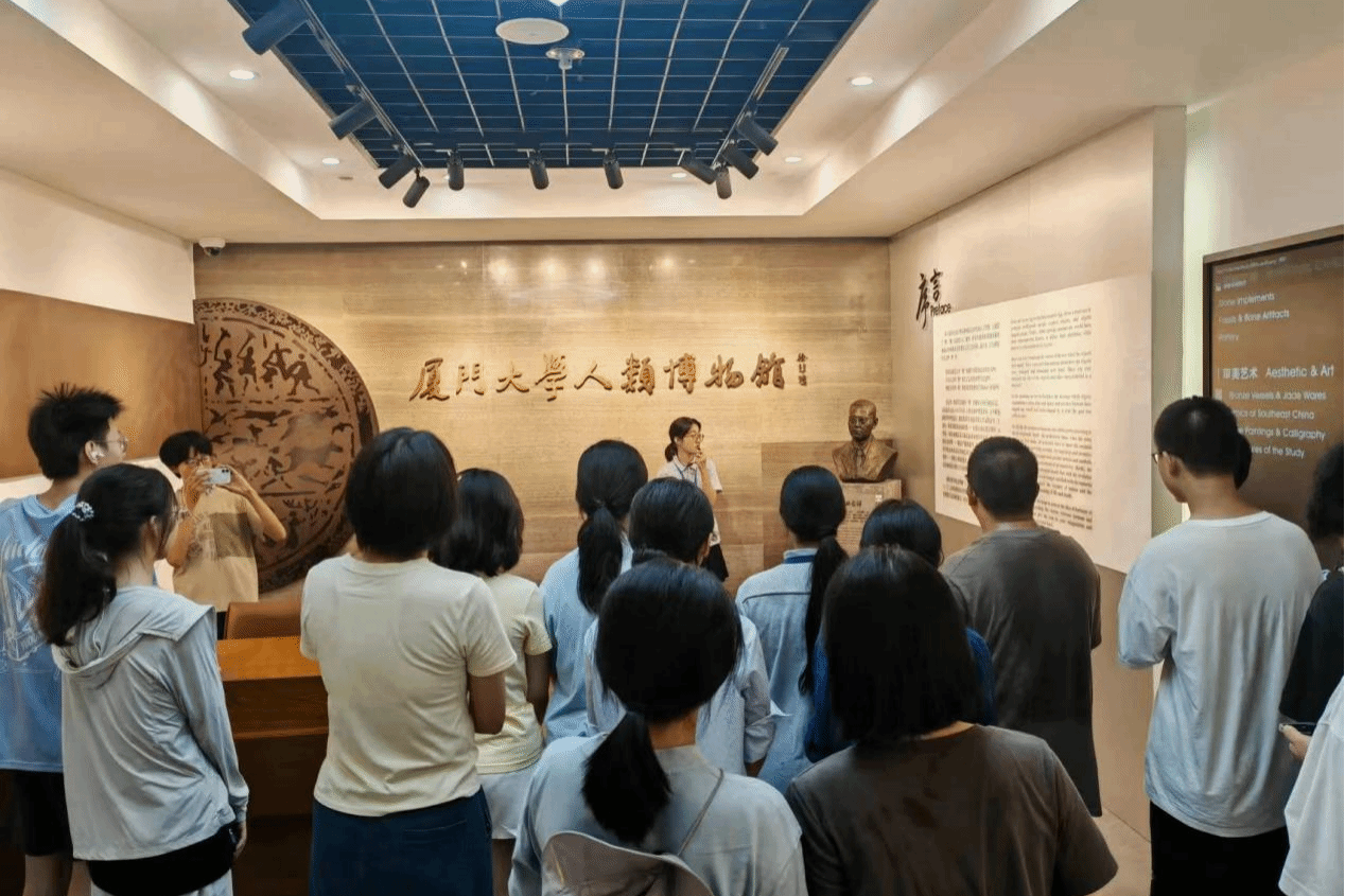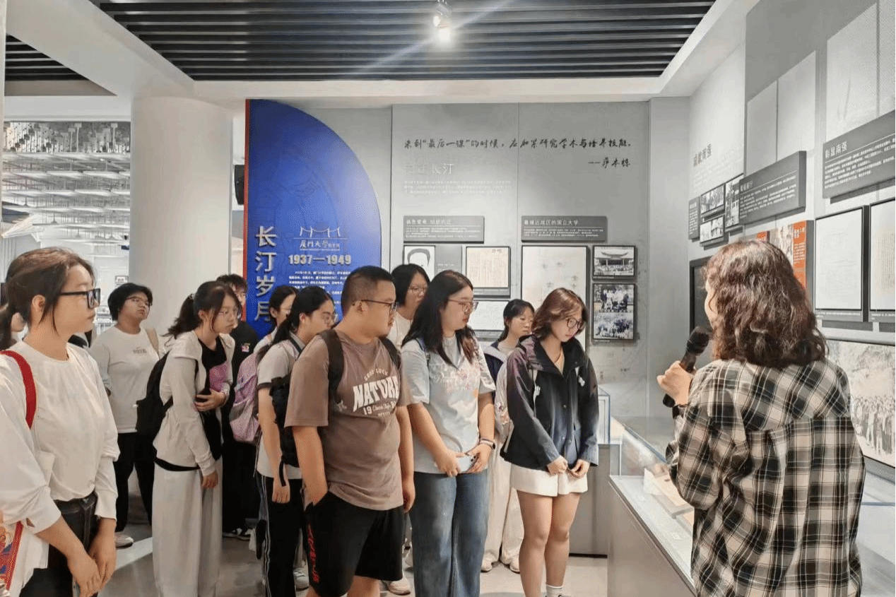 同学们首先前往校史馆参观。在讲解员引导下,大家沿着厦大“初创”“长汀岁月”“人民新厦大”“南强春天”和“奋进一流”五个发展阶段,系统回顾了学校百年历程,帮助同学们深切体会“自强不息,止于至善”的校训精神,并深入学习了厦大独特的“四种精神”。