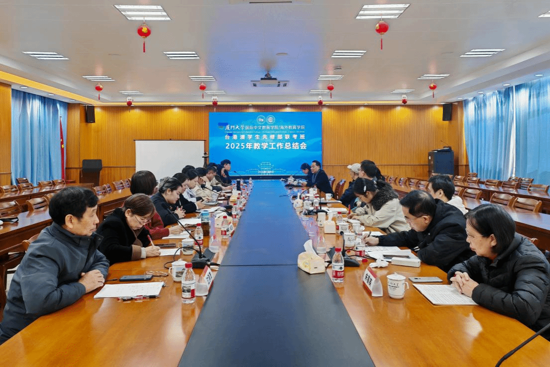 聚焦学生培养质量提升与教学改革深化,我院台港澳学生先修部于1月8日在坤銮楼C104召开2025年度教学工作总结会,国际中文教育学院/海外教育学院院长陈志伟、党委副书记李启忠、招生科负责人黄建军、先修部教师团队及管理团队参加会议。