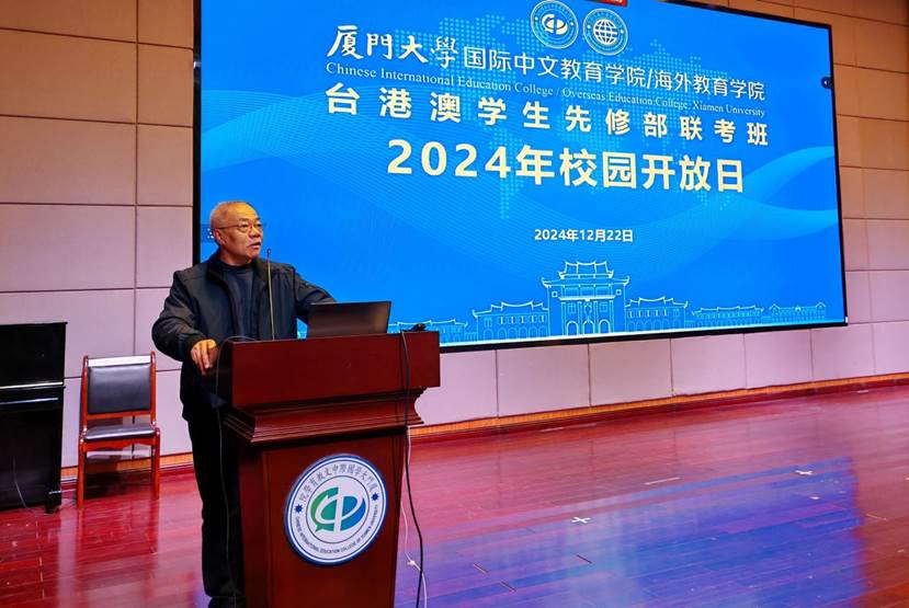 12月22日上午,国际中文教育学院/海外教育学院在翔安校区举办台港澳学生先修部联考班2024年校园开放日活动。此次活动吸引了200余名港澳台学生及家长亲临现场,同时还为无法到达现场的学生及家长提供了线上直播参与渠道。学院党委副书记林明华、先修部科任教师、学生管理科、招生科等老师出席宣讲会。大会由学院招生科负责人黄建军主持。