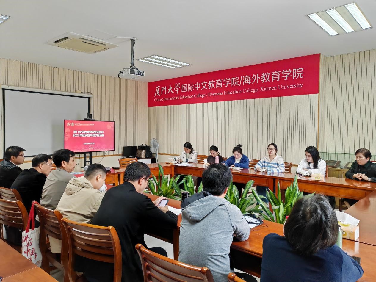 为进一步了解教学情况、强化教学技能,提升台港澳学生先修部办学质量,国际中文教育学院/海外教育学院于12月1日在坤銮楼B409举行2023年秋季学期港澳台侨联考班期中教学座谈会,学院华文系副主任郭建花、先修部科任老师、教务、辅导员及学管参加了座谈会。