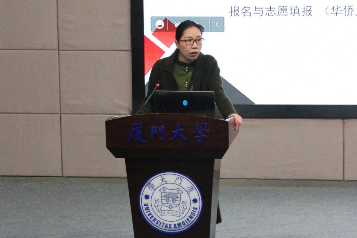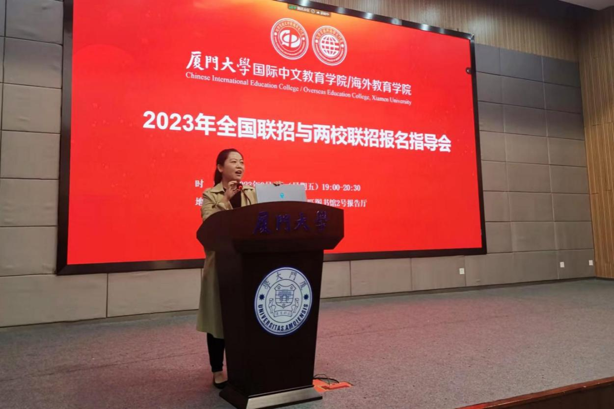 3月3日晚,由厦门大学国际中文教育学院/海外教育学院台港澳学生先修部举办的2023年全国联招与两校联招报名指导会在翔安校区图书馆二号报告厅顺利举行。本次指导会由教务林幼芳老师主讲,班主任赵蓉老师主持,近200名港澳台侨联考生现场参会,100多名考生家长腾讯会议在线参会。