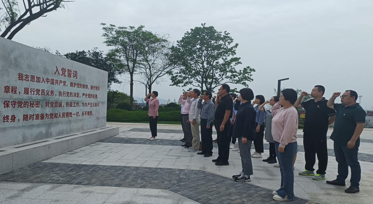 五月的神山广场耸立在忙碌的城市之中,从观景平台上,集装箱云集的码头、蔚蓝色的大海、壮美的海沧大桥、高楼林立的杏林湾和旖旎的城市风光尽收眼底,展现了改革开放四十余年的建设成果。来到入党誓词广场,全体党员同志都有力地举起了右手,发出了铿锵的誓言。重温誓词,回忆初心,对党许下的庄严承诺,初心如磐,使命在肩,在各自的岗位上做出应有的奉献,以脚踏实地的行动响应习近平总书记在建党百年之际发出的号召,继续为实现人民对美好生活的向往而不懈努力。