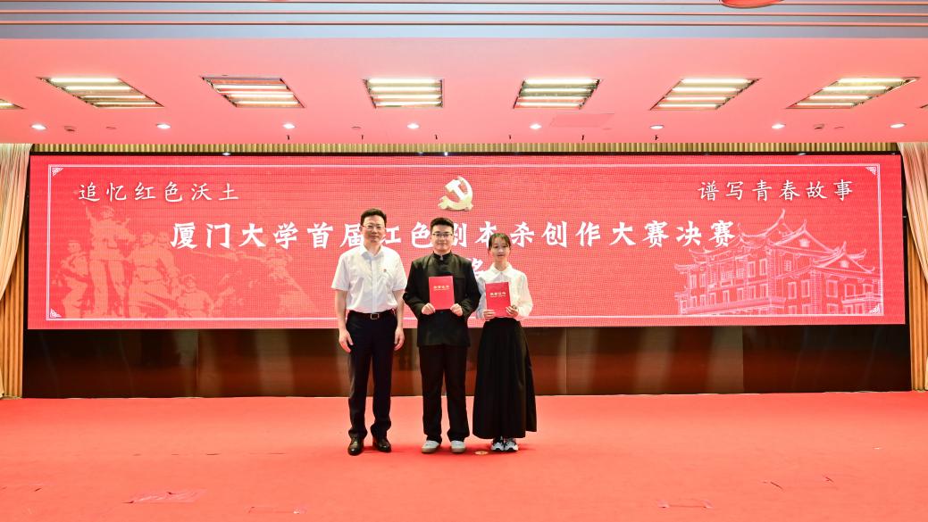 为深入开展学习贯彻习近平新时代中国特色社会主义思想主题教育,创新思政教育形式,5月7日晚,由厦门大学党委组织部/党的建设工作办公室、教务处、校团委主办的厦门大学首届红色剧本杀创作大赛决赛在科艺中心一楼多功能厅举办。比赛自今年1月下旬至5月上旬,来自全校50余组选手报名参赛,最终12组选手进入决赛。由我院2022级硕士研究生孙昊泽、段若琳创作的《四方同安》在决赛中斩获一等奖,学院获优秀组织奖。