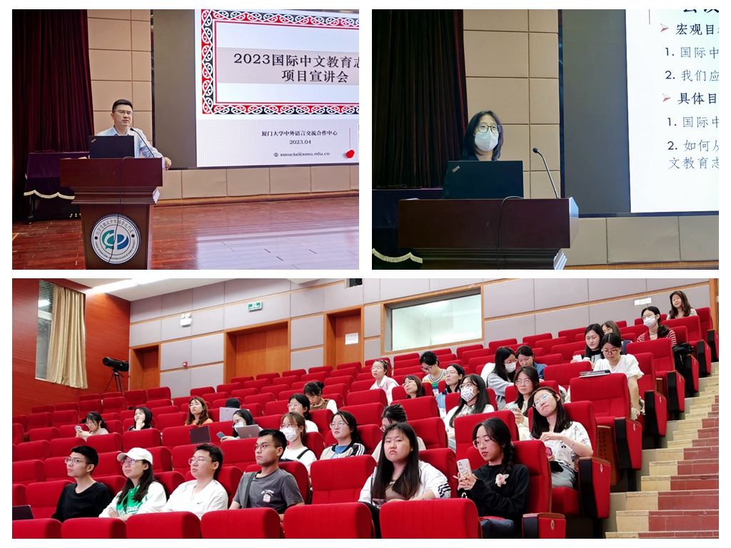 为提高同学们对国际中文教育志愿者项目的认识,4月21日上午,厦门大学国际中文教育学院/海外教育学院举办了国际中文教育志愿者项目宣讲会。国际中文教育学院党委副书记林明华、中外语言合作交流中心副主任林琳、中外语言合作交流中心蔡雅莉,学院团委书记陈艺新参加会议。会议由林明华主持。