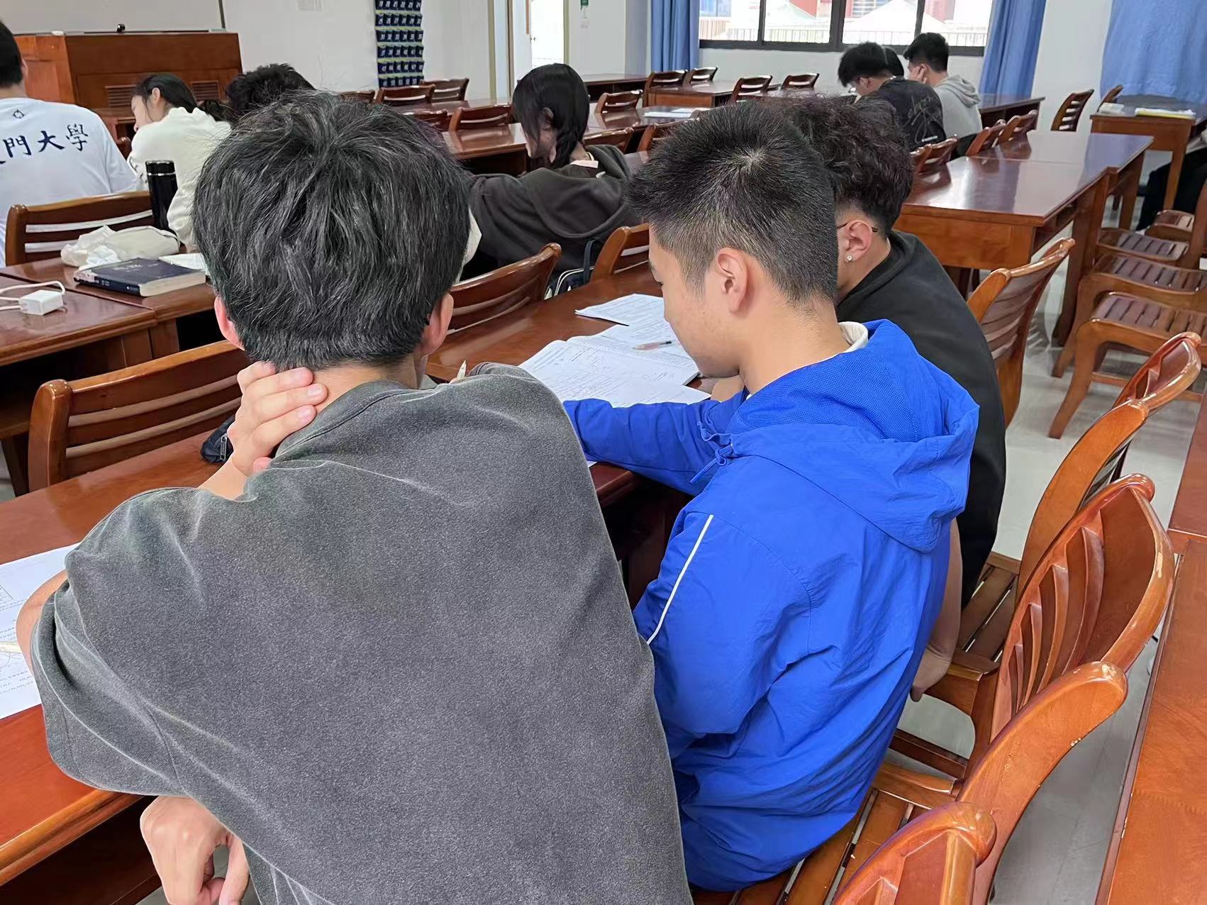 厦园绿意正葱茏,学子读书意气盛。为弘扬和践行雷锋精神,4月22日,国际中文教育学院/海外教育学院青年志愿者协会于坤銮楼开展了第八期“学长学姐辅助计划”志愿服务活动。参与活动的志愿者来自厦门大学国际中文教育学院/海外教育学院、海洋与地球学院、航空航天学院、电子科学与技术学院、药学院等学院。志愿者们慷慨解惑,继续以至真的热情和至诚的耐心为我院港澳台侨联考班学生辅导助学。