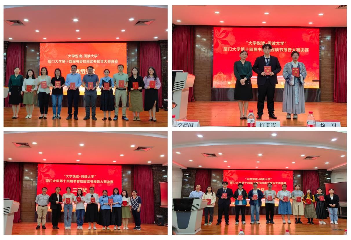 为进一步营造爱读书、读好书、善读书的良好氛围,提高学生人文素养,丰富学生精神文化生活,着力建设“书香校园”,4月21日晚,厦门大学第十四届书香校园读书报告大赛决赛在联兴楼多功能厅落幕。共有12支来自各个学院的队伍进入决赛,经过激烈角逐,我院2022级研究生段若琳获一等奖,王笑、万欣林团队获三等奖,王梦竹获优秀奖,学院荣获优秀组织奖。