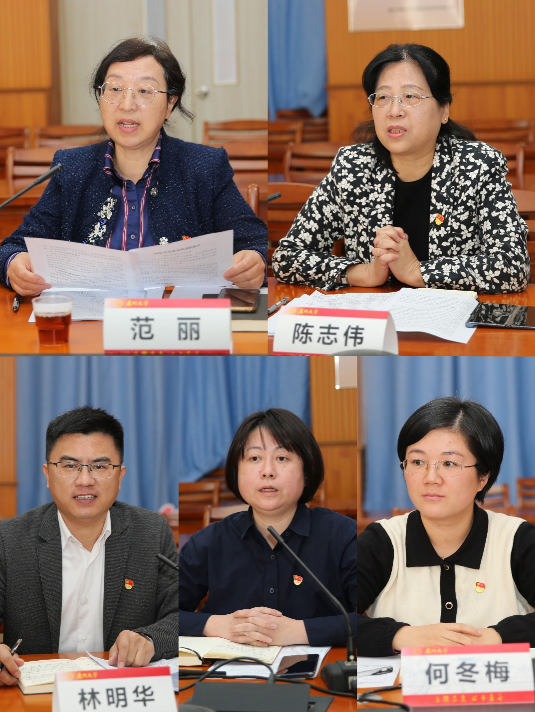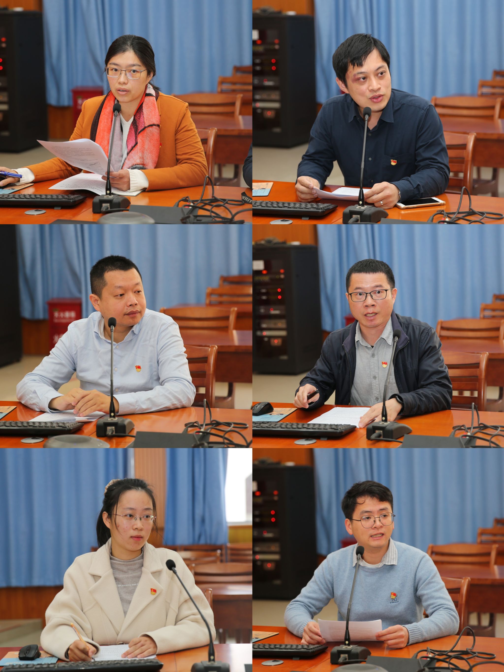 2022级党支部书记张旭、2021级党支部宣传委员许鸿滨、语合中心党支部书记林琳、华文系教师党支部书记洪镔、行政党支部书记洪伟、研究生高年级党支部书记陈艺新依次进行现场述职。教工离退休党支部书记黄建军采取书面报告的方式进行述职。每位支部书记述职后,党委委员分别对各自联系的党支部进行点评。参会人员进行了现场测评。