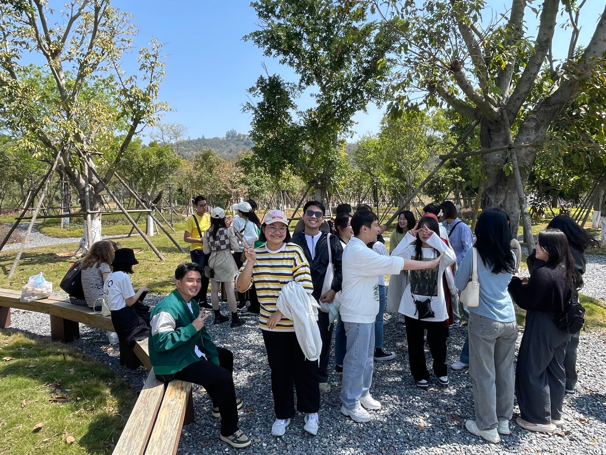 活动最后,所有参与成员及工作人员在八闽园入口处合影留念。来自泰国的陈婉清同学表示,本次汉语角活动非常有趣,户外活动也能够让大家贴近大自然,感受明媚的春光。