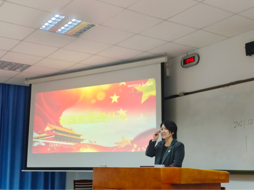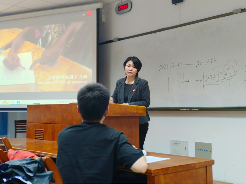 最后,杨晓燕深情朗诵了一首《祖国到底是什么》的诗歌,语调铿锵,饱含深情。她以此鼓励同学们要积极投身学院的各项活动,要在各种活动中学习宣传和贯彻党的二十大的精神,发挥专业优势,为传播中华文化,展现可信、可爱、可敬的中国形象贡献力量。