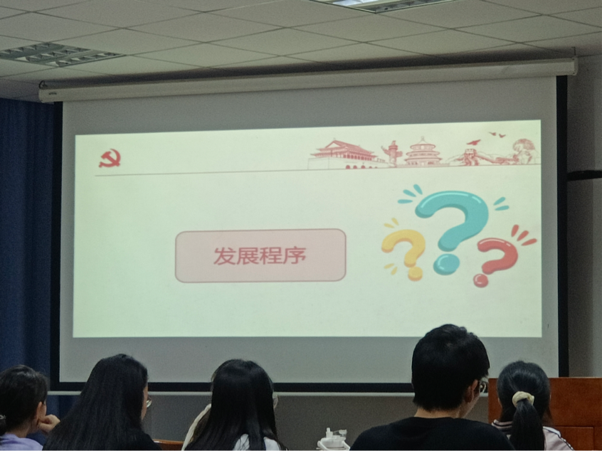 通过介绍,与会的同学们对发展党员的过程有了详细的了解,对各个阶段个人需要递交的材料和党支部需开展的工作和召开的会议都有了初步认知。