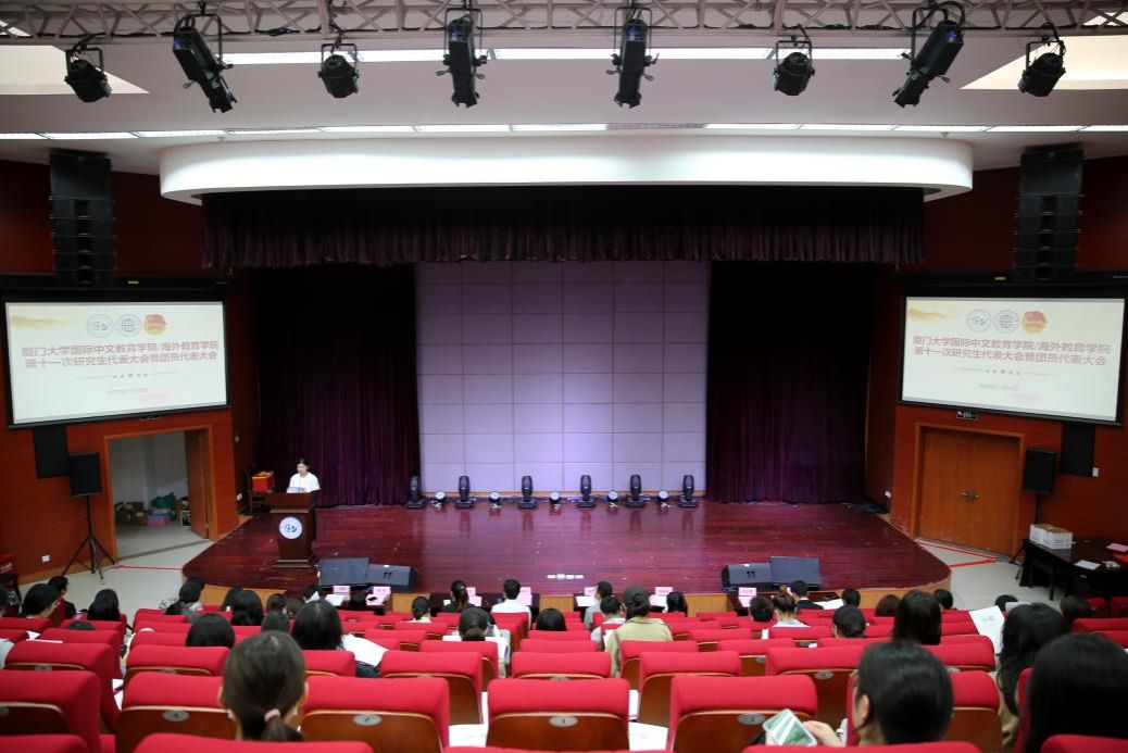 11月4日中午,厦门大学国际中文教育学院/海外教育学院第十一次研究生代表大会、团员代表大会在翔安校区坤銮楼B102多功能厅顺利召开。大会选举产生了厦门大学国际中文教育学院/海外教育学院第十一届研究生会主席团、研究生团总支书记。国际中文教育学院/海外教育学院党委副书记林明华、团委书记陈艺新、厦门大学第三十二届研究生会主席团成员孟雨彤、部分兄弟学院研究生会主席团成员以及学院研究生代表出席大会。