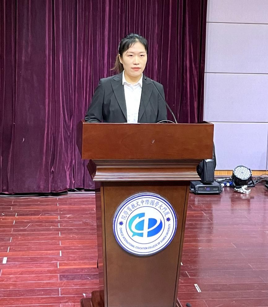 孟雨彤宣读厦门大学研究生会贺信。贺信提到,国际中文教育学院/海外教育学院研究生会坚持以立德树人为导向,以服务同学为宗旨,结合专业特色与青年学生成长需求,积极弘扬中华传统文化。她希望国际中文教育学院/海外教育学院研究生会能够继续与校研究生会保持积极交流,共同推进我校研究生会不断发展。