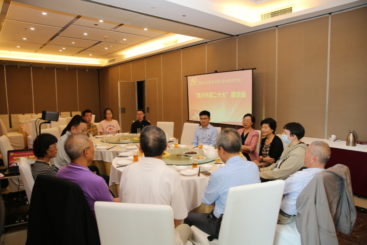 宏伟蓝图催人奋进,踔厉奋发续写华章。10月28日上午,在思明校区海韵园的一间活动室里,国际中文教育学院/海外教育学院“老少共话党的二十大”主题党日活动正在火热进行,校关工委副主任、基层党建联络员郑冰冰应邀出席。学院党委书记范丽,副书记林明华,党委委员、副院长耿虎,院团委书记陈艺新和学院退休教工党员、研究生党员代表欢聚一堂,畅谈学习党的二十大精神的感想。活动由林明华主持。