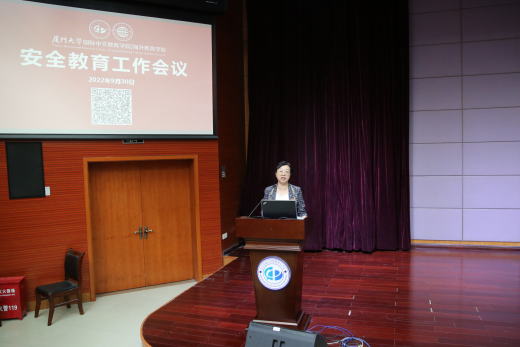 2022年9月30日上午,厦门大学国际中文教育学院/海外教育学院在厦门大学翔安校区坤銮楼B102多功能厅召开安全教育工作会议暨双周政治理论学习活动,包括了专家讲座和学校会议精神传达两个部分,学院全体教职工和在校研究生共同参与。此次学习活动由学院党委书记范丽主持。
