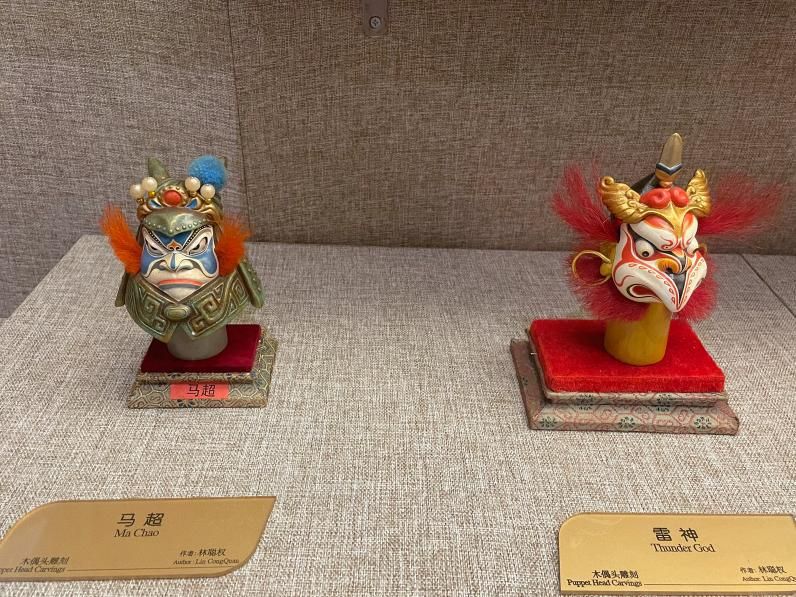 (泉州非遗文化馆中展示的木偶头雕刻)