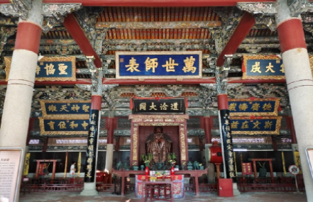 7月21日,实践队一行顶着烈日,怀着激动的心情从厦门出发,首站去到了泉州古代文化教育的殿堂——泉州府孔庙(亦称文庙)。文庙基本形制为“左学右庙”,建筑面积5000多平方米,是泉州现存大型宋代建筑之一,具有极高的历史、科学和艺术价值。实践队主要考察参观了大成殿,大成殿为文庙主体建筑,始建于北宋,是典型的宋代重檐庑殿式结构。