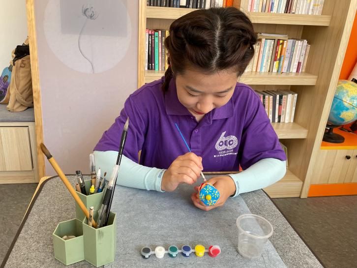 沿着木偶小巷仅几步之遥,有一家木偶书店。玻璃展柜上摆放着各式各样的精致木偶,花脸雷公、独角龙、孙悟空等等...... 实践队一行惊喜地发现店里正好有两位游客在体验木偶制作,队员们也跃跃欲试。首先是给木偶头上色,用细细的笔刷勾勒出木偶千变万化的神态和炯炯目光;再用针线一丝不苟缝合木偶的衣物布料;最后再加上木偶提线,一个简易的木偶就制作完成了。