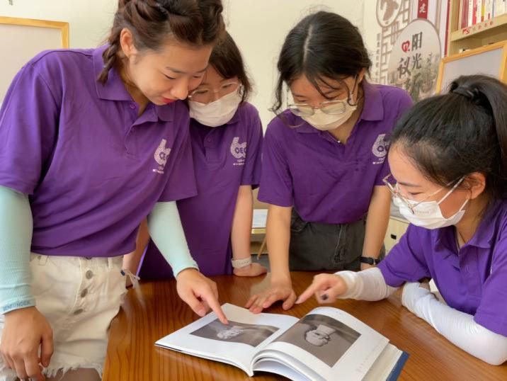 (实践队队员们共同阅读木偶剧介绍书籍)