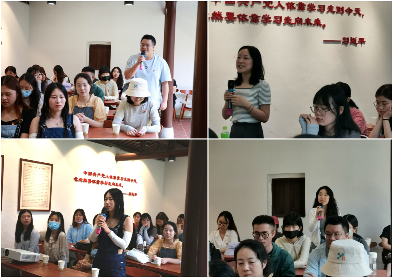 毕业生党员纷纷踊跃发言,畅谈毕业感想。2019级党支部的张馨月同志谈到,要肩负起这一代人的时代责任,保持思想理论学习不松懈,抓好生活、工作与学习中的主要矛盾。2020级党支部书记耿旭琛同志从赓续红色血脉、发扬“三牛”精神等几方面表明了自己为人民服务的决心。