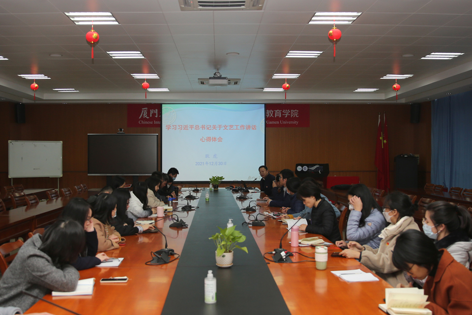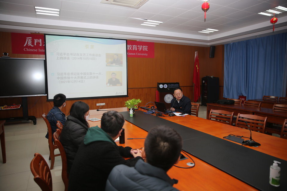 本次党课于2021年12月30日中午在学院C104会议室举行,耿虎委员的党课主要围绕习近平总书记关于文艺工作的重要讲话展开讲述。在党课上,耿虎老师着重指出了这两次重要讲话的主题就是推动社会主义文艺繁荣发展、建设社会主义文化强国。这主要涉及对文艺、文化工作的认识问题,建设问题及其传播问题。
