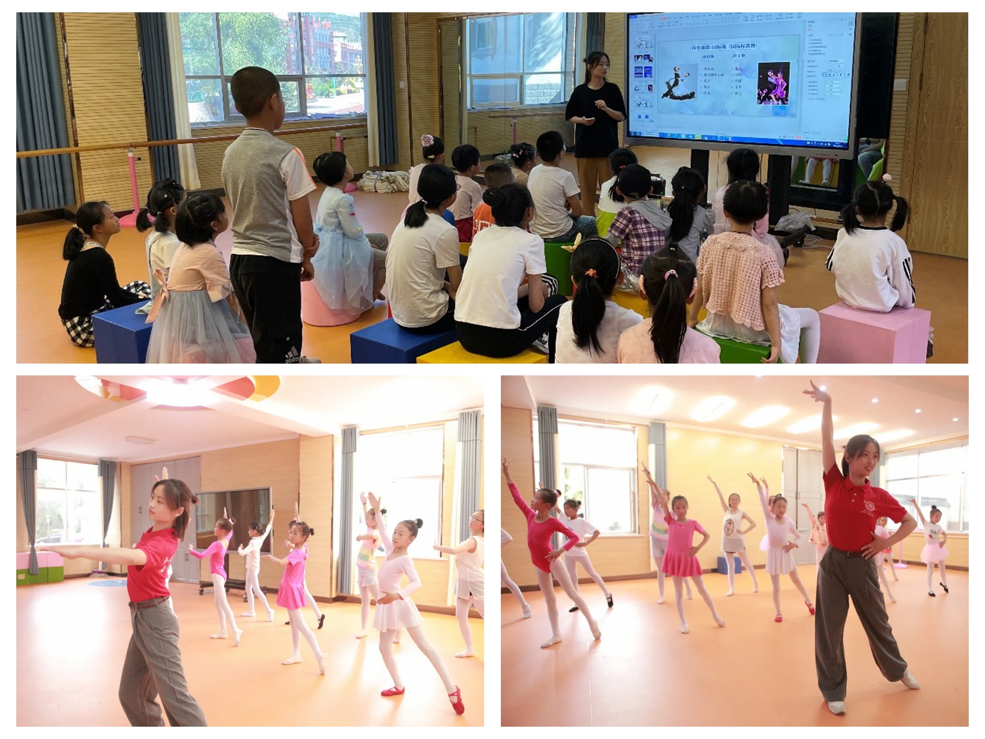 徐梦轩同学开设了《体育舞蹈课》,学生共22人,年龄从6至15岁。该课程主要普及体育舞蹈知识,训练舞蹈基本功与体育舞蹈基本舞步。课上,徐梦轩带领孩子们进行热身、形体训练,每个动作都手把手地示范、纠正。她还通过舞蹈游戏让全体学生积极参与到课堂中来,迅速增进了生生、师生情谊,培养了学生们对舞蹈的浓厚兴趣。