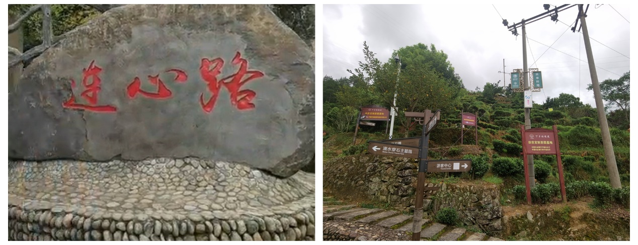 因此现在这条山路,被下党群众深情地称为“党群连心路”,寓意中国共产党与广大人民群众心心相连。沿着连心路长途跋涉,听松涛阵阵,溪流潺潺,实践队员切身的感受到其中的艰辛与不易,如今的连心路多已修有台阶,虽然陡峭,但还并不算难行,实践队步行一段后已汗流浃背,而据下党乡的主题展览可见,当年的这条路荆棘杂草丛生,习近平总书记一行人只能边走边用镰刀处理开辟出一条羊肠小道,在正值酷暑的时期,途径数个小时的路程奔赴下党,这样的精神值得我们每一个青年党员学习。
