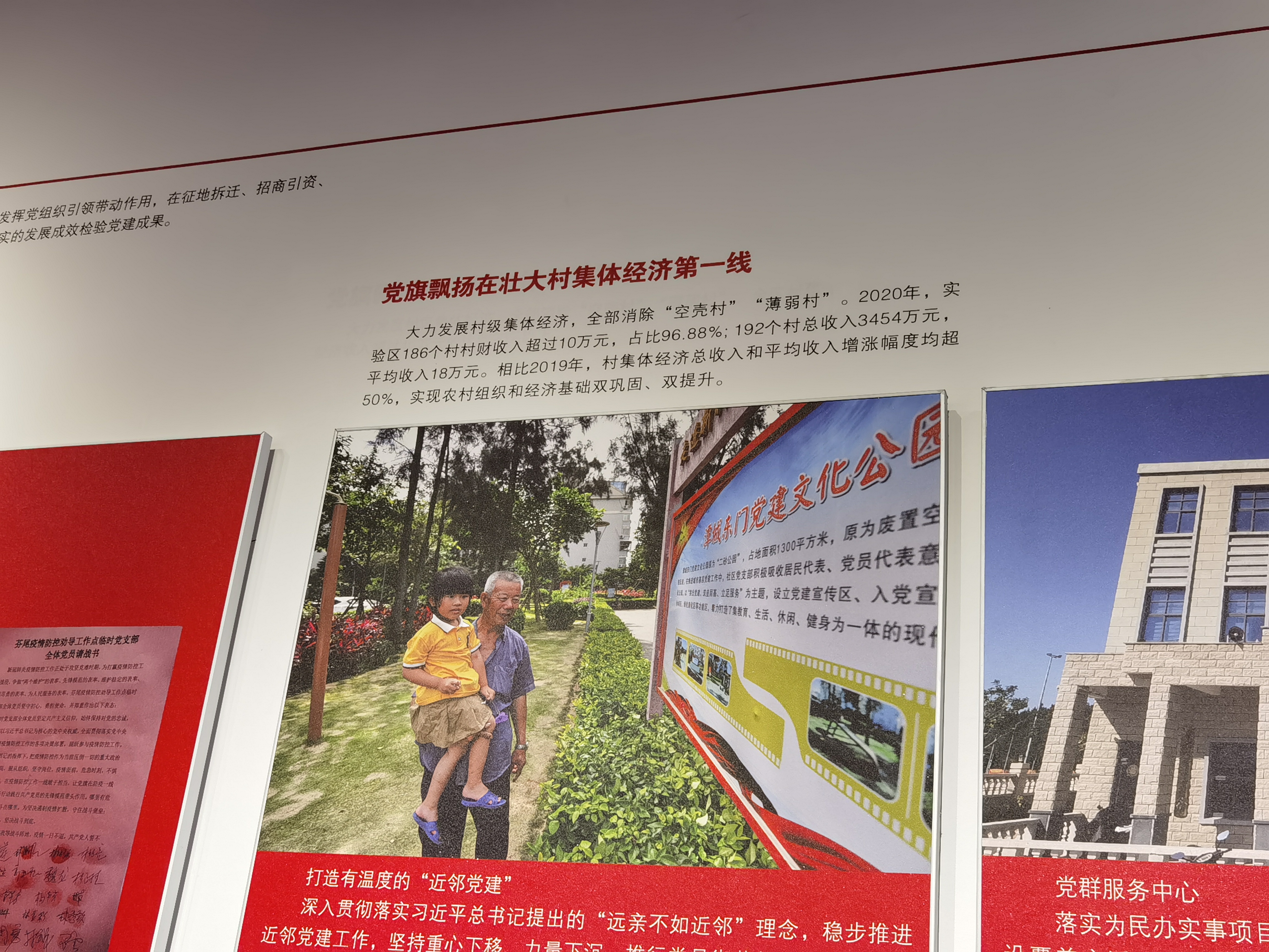 3.深入挖掘的红色资源。旅游业是乡村振兴发展的一大重要助力,作业中国革命老区,大坪村善于挖掘村中的红色文化资源,通过院士故居、烈士故居等的修缮和开发开放,吸引了周边,乃至全区,全省大量的游客来此进行红色精神学习和探访;同时又建设了整个平潭综合实验区唯一且最大型的党日活动馆,不仅提供了学习革命历史和平潭振兴发展的教育基地,也成为了大坪村必打卡的文化地标。开馆至今的四万余客流量见证了大坪村的红色文明新风;同时村居等墙面上所悬挂的各种红色精神语录、习近平总书记关于发展的语录等,以及整个村里随处可见的红旗飘扬之景象,都使得大坪村成为深入发扬老区的革命精神,开展红色教育宣传的典型范例。一系列资源整合开发,不仅是全村的红色教育体现,也是大坪村的特色和文化标志之一。还记得此次走访村党支部书记时,他还正要忙着去接待另外的参访团队,也可见旅游业之发达兴旺,。