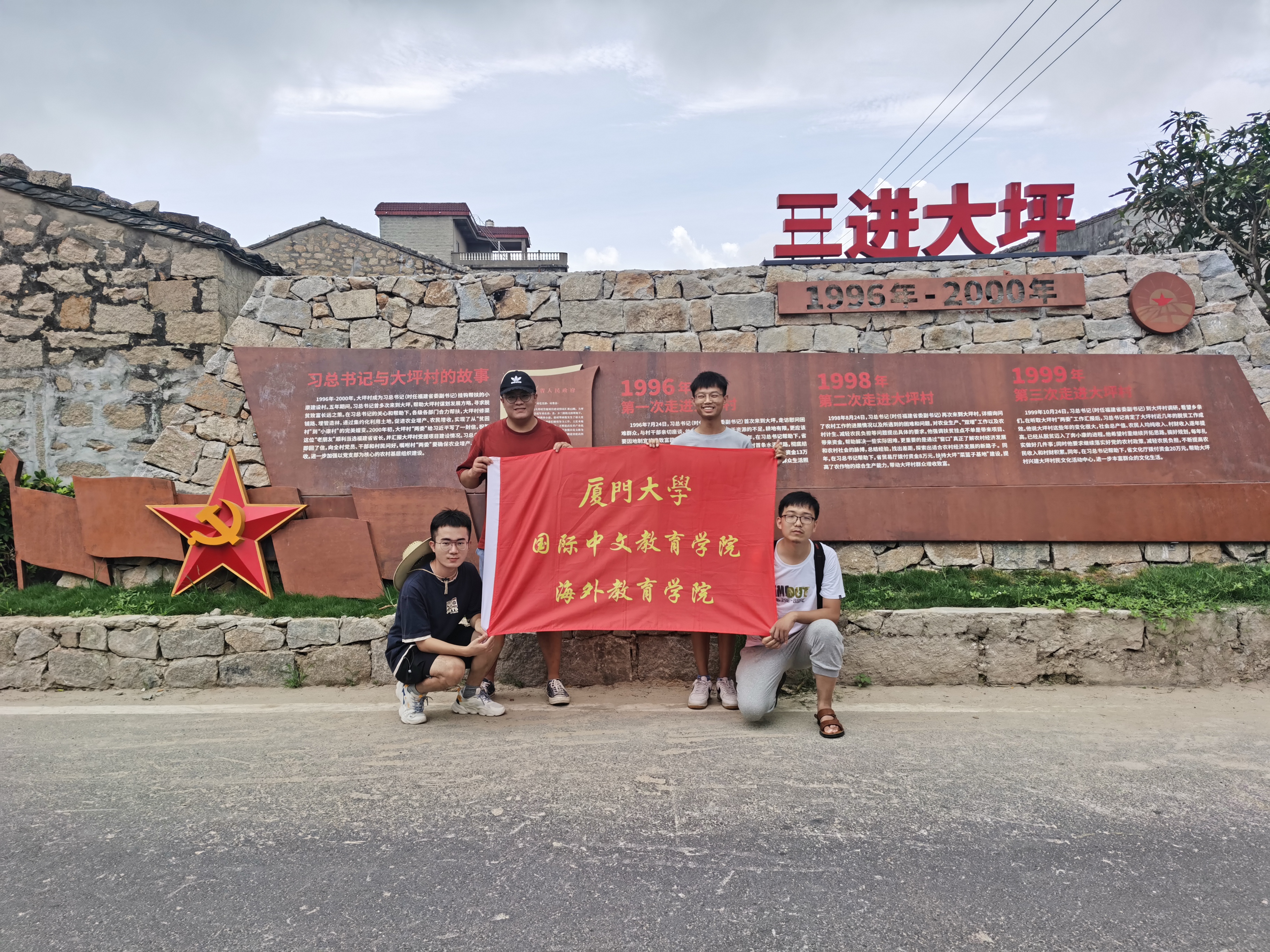 逐梦乡村振兴,徜徉红色征程。为深入感受脱贫攻坚成果,领会建党百年的历史跨越,传承红色革命精神,追溯红色记忆,国际中文教育学院/海外教育学院暑期社会实践队——“溯航”,前往福建省平潭综合实验区中楼乡大坪村开展了主题为“探访乡村振兴,体悟红色文化”的社会实践活动。此次实践活动由我院2020级硕士研究生姜立恒带领,包括年级同学耿旭琛、章振东、何经武三位队员。