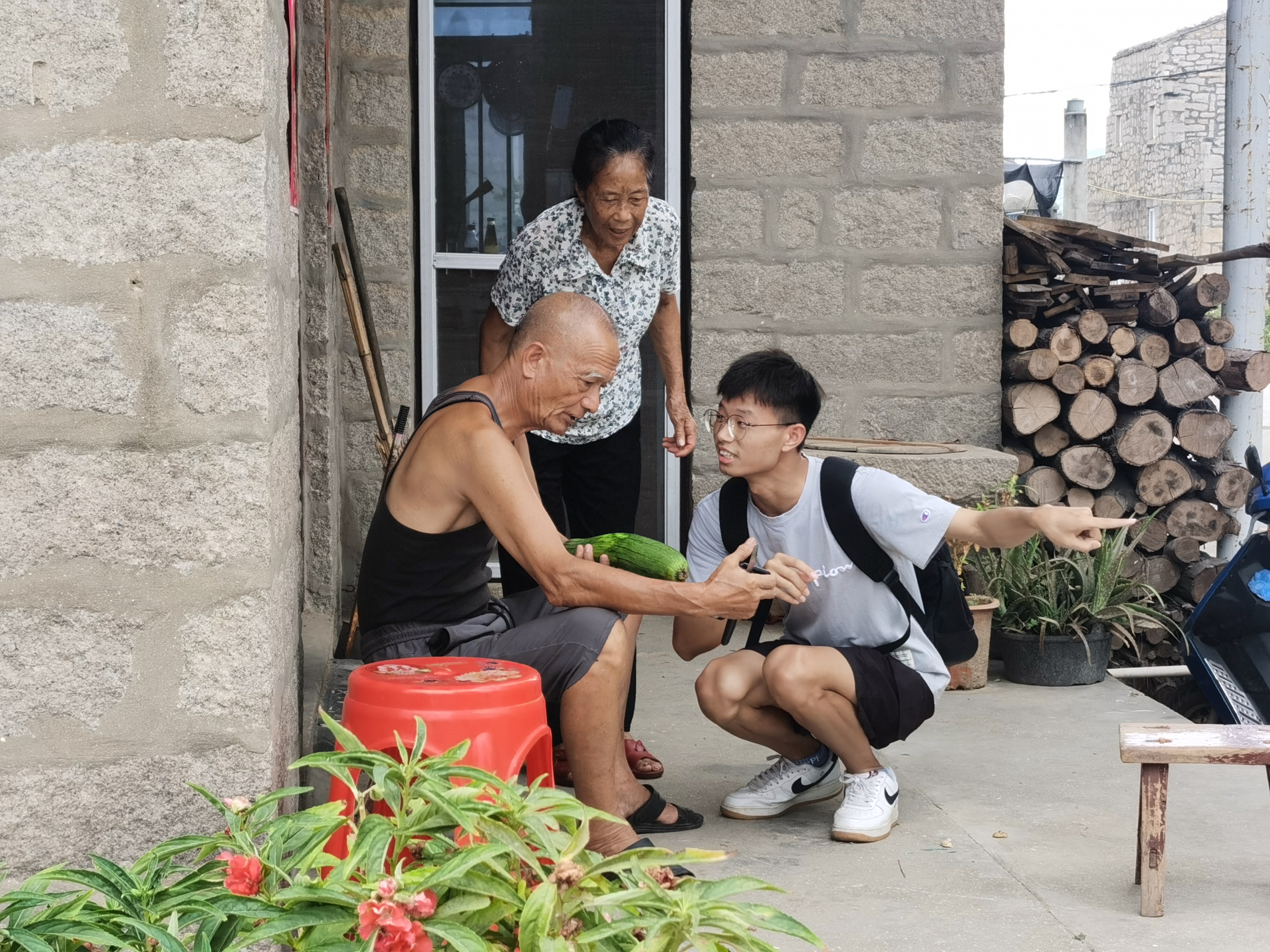(图为队长姜立恒同学与大坪村村民采访交流)