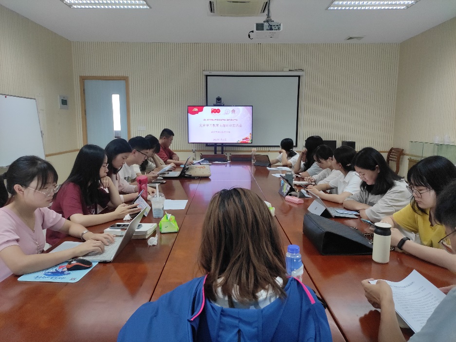 为深入学习领会《中共中央关于在全党开展党史学习教育的通知》、《党史学习教育实施工作方案》等文件精神,切实做好党史学习教育贯彻落实工作,2021年7月15日下午,国际中文教育学院/海外教育学院研究生2020级党支部在坤銮楼B409会议室召开党史学习教育专题组织生活会,会议由党支部组织委员姜立恒同志主持,学院党委副书记吴荻老师莅临指导。