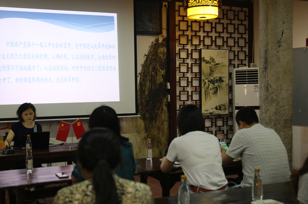 参观后,党支部全体成员在大宅村书院开展了党史学习教育第三次专题学习会,支部成员王碧华同志领学改革开放和社会主义现代化建设新时期历史,中国的社会主义新时期建设起始于十一届三中全会,中国由此全面转向经济建设,在介绍十一届三中全会的具体内容与意义后,着重介绍了改革开放的一系列伟大决策与实践。通过对安徽凤阳小岗村家庭联产承包责任制改革、四大经济特区的确立,绥芬河延边口岸的开放、福州电信改革等真实事件的回望,与会同志深刻地感受到了改革开放对于中国成为全球第二大经济体的伟大意义,目前中国正在走向实现中国梦的伟大实践之中,改革开放已经成为中国实现中华民族伟大复兴的中国梦的钥匙。