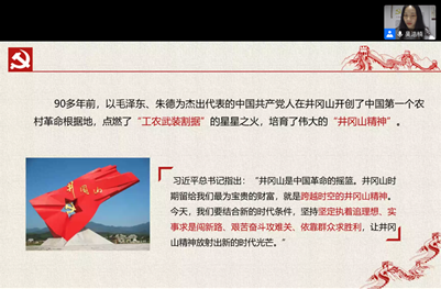 90多年前,工农红军在井冈山 龙江书院认真聆听政治知识;今年7月底,厦门大学“扬才计划”二期学员们在井冈山体验那段光辉而又艰难的历史;而今,党支部的同志们在线上一起学习感悟井冈山精神。时、地、人虽会变易,但不变的,是中国共产党人对共产主义理想和信念的坚定信心。