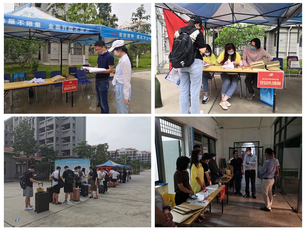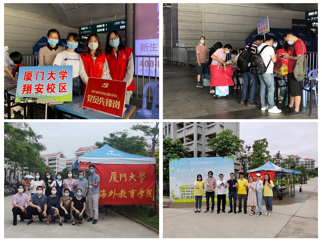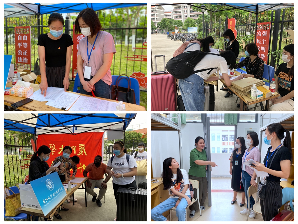 返校当日,支部志愿者忙碌的身影出现在厦门火车站、宿舍园区,从早到晚,志愿者们手持引导牌、对返校的同学一一进行体温测量、信息核验登记、礼包发放等环节。学院党委副书记陈向柳、吴荻前往宿舍园区驻点参与志愿服务和深入宿舍慰问返校学子。