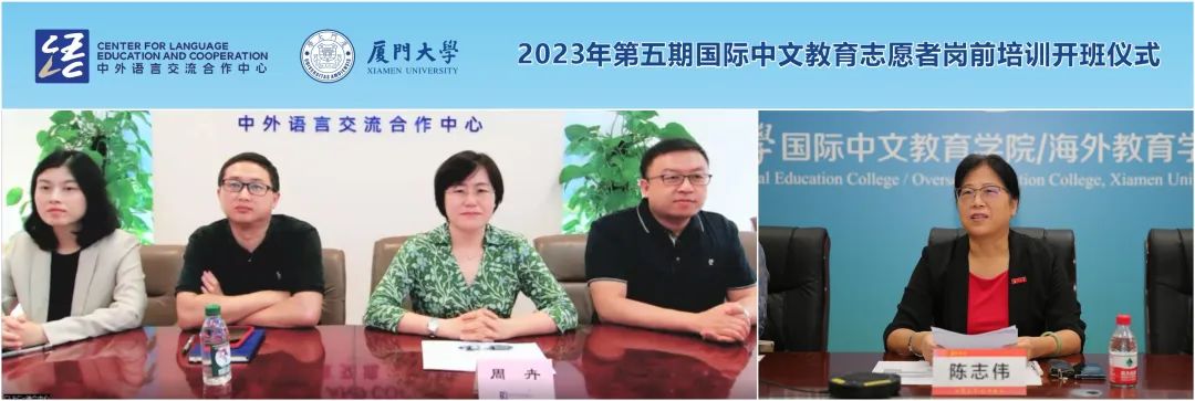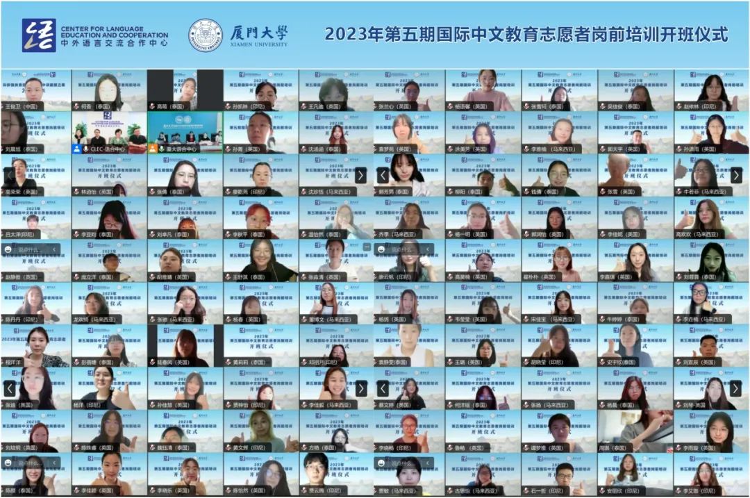 6月26日,由教育部中外语言交流合作中心主办,厦门大学承办的2023年第五期国际中文教育志愿者岗前培训顺利开班。教育部中外语言交流合作中心志愿者工作处处长周卉、厦门大学国际中文教育学院/海外教育学院院长陈志伟、教师代表以及来自北京外国语大学、上海大学、河北大学等全国30余所院校的131名待派国际中文教育志愿者参加了本次线上开班仪式。会议由厦门大学中外语言交流合作中心副主任林琳主持。