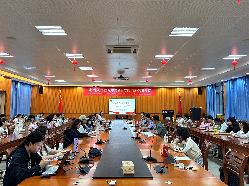 为深入学习贯彻习近平总书记关于青年工作的重要思想,增强团员和青年的使命感和责任感,10月27日下午,国际中文教育学院/海外教育学院在翔安校区坤銮楼C104开展团员和青年主题教育“坚强核心”专题学习会暨国际中文教育志愿者经验分享交流会。校团委杨雨岚老师、国际中文教育学院邓军副教授、团委书记陈艺新、在校研究生团员和青年参加活动。活动由学院研究生团总支书记杨怀瑶主持。