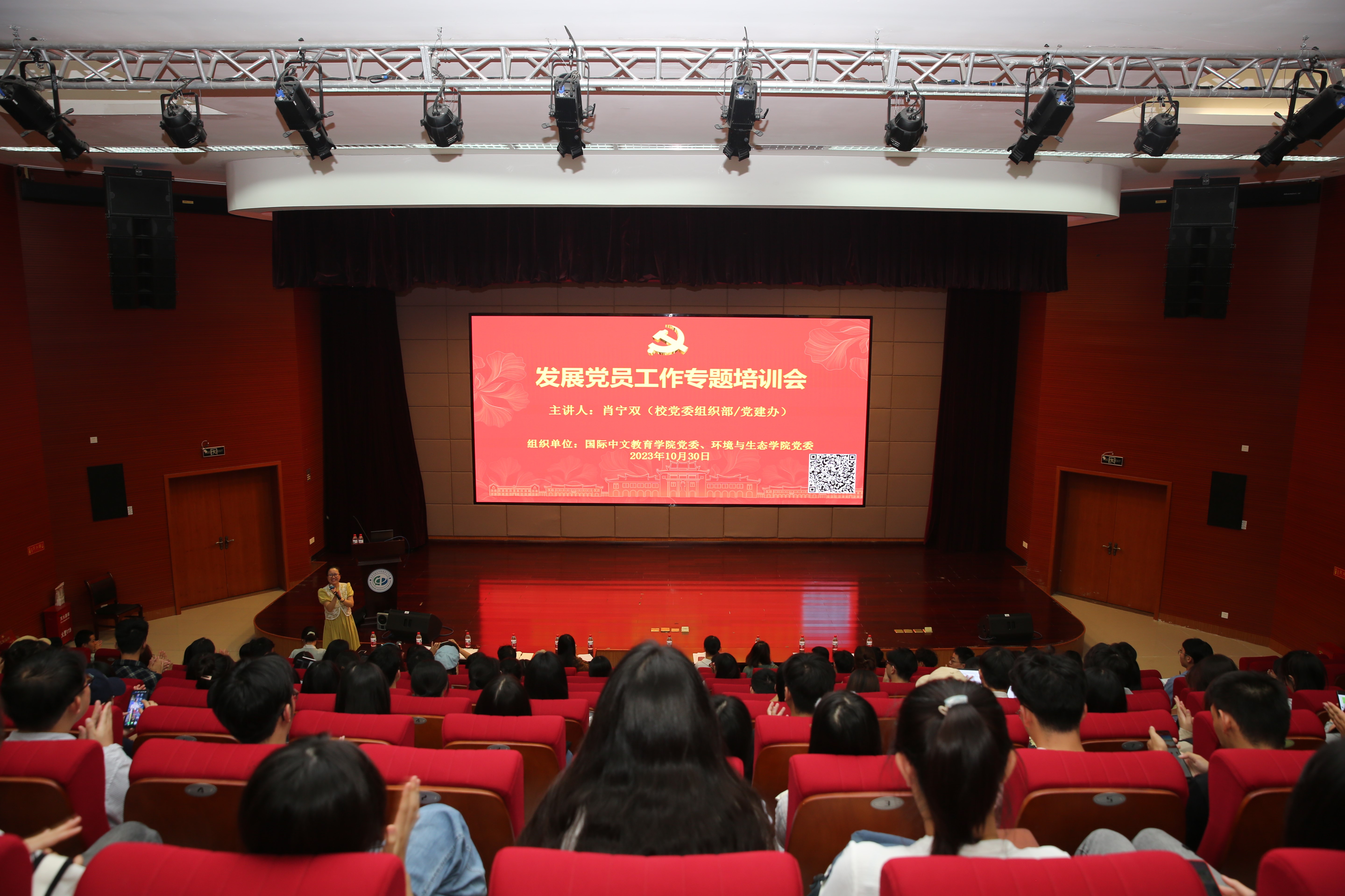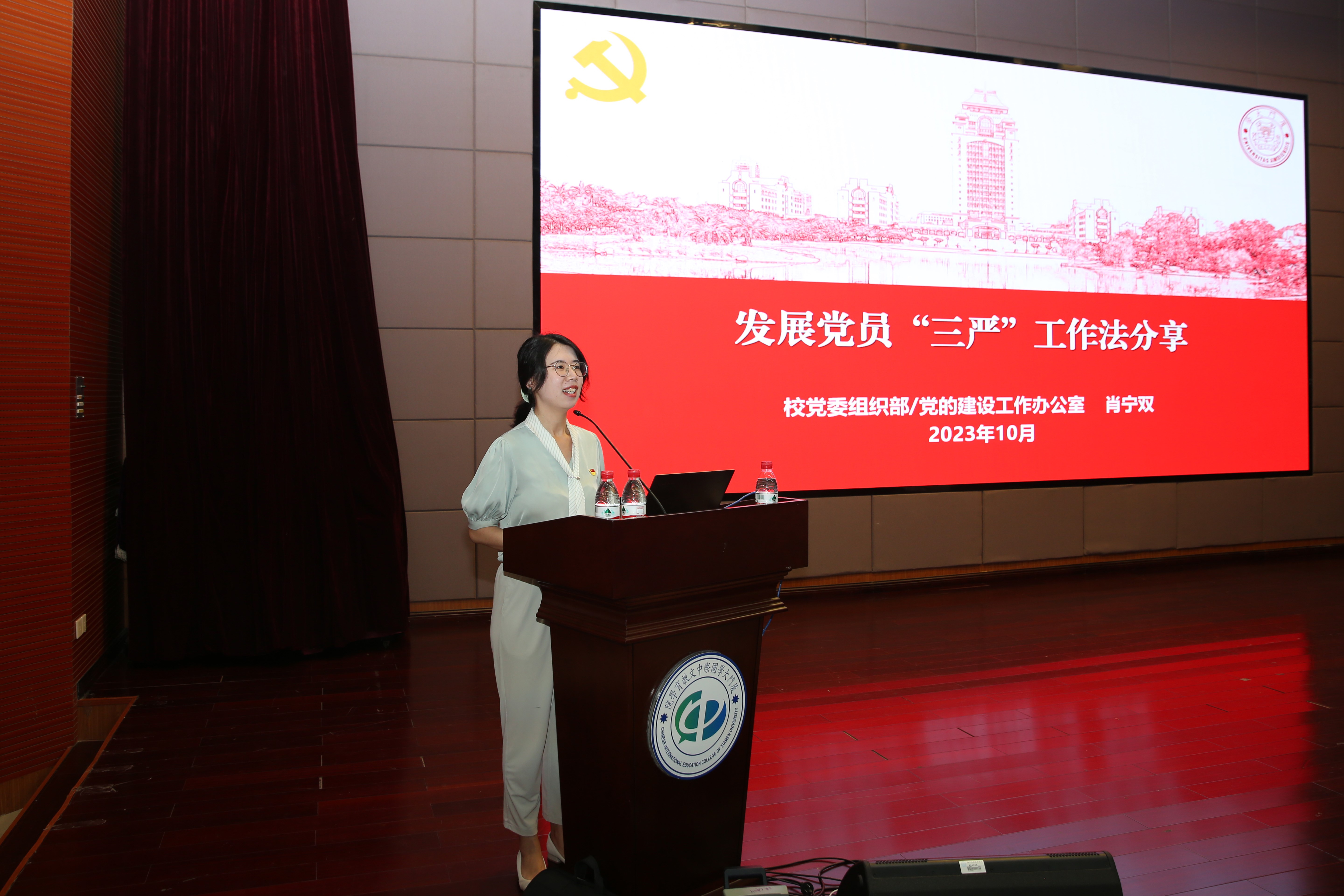 为促进发展党员工作规范化、标准化,切实提高基层党支部工作的质量和实效,10月30日下午,在坤銮楼B102报告厅,国际中文教育学院/海外教育学院、环境与生态学院联合邀请校党委组织部/党的建设工作办公室干部肖宁双老师作了题为《发展党员“三严”工作法分享》的讲座,翔安校区各学院基层党支部委员、预备党员、入党积极分子代表参加本次党课学习。
