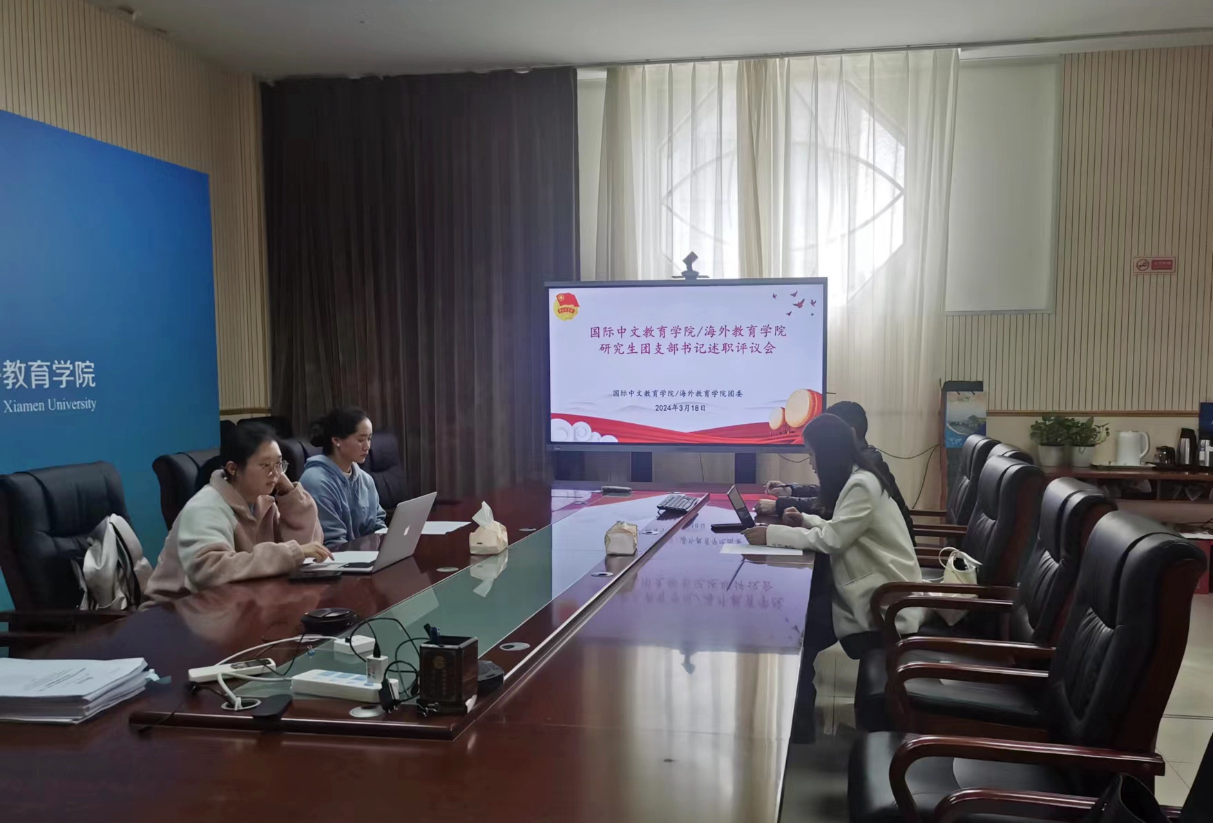为深入学习贯彻党的二十大精神和习近平总书记关于青年工作的重要思想,夯实基层团组织建设,响应党中央全面从严治团的要求,推进共青团工作走深走实,国际中文教育学院/海外教育学院于3月18日在坤銮楼B509开展了2023年度研究生团支部书记述职评议会。学院团委书记陈艺新及各研究生团支部书记参加本次会议。