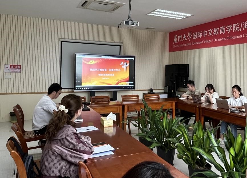 为扎实开展党纪学习教育,4月18日下午,国际中文教育学院/海外教育学院研究生高年级党支部在翔安校区坤銮楼B409开展党纪学习教育第一次集中学习,会议由支部书记陈艺新主持。