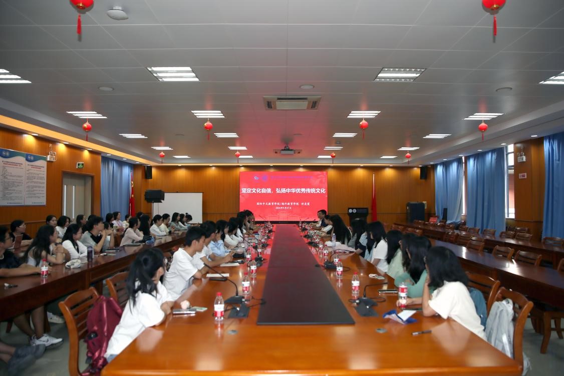 为进一步加强学生思想政治教育,帮助新生了解学校和学院的历史,勉励新生树立远大理想、明确学习目标,9月27日下午,国际中文教育学院/海外教育学院党委书记许美霞为2024级国内研究生讲授了一堂题为“坚定文化自信,弘扬中华优秀传统文化”的生动党课。党课由学院党委副书记林明华主持。