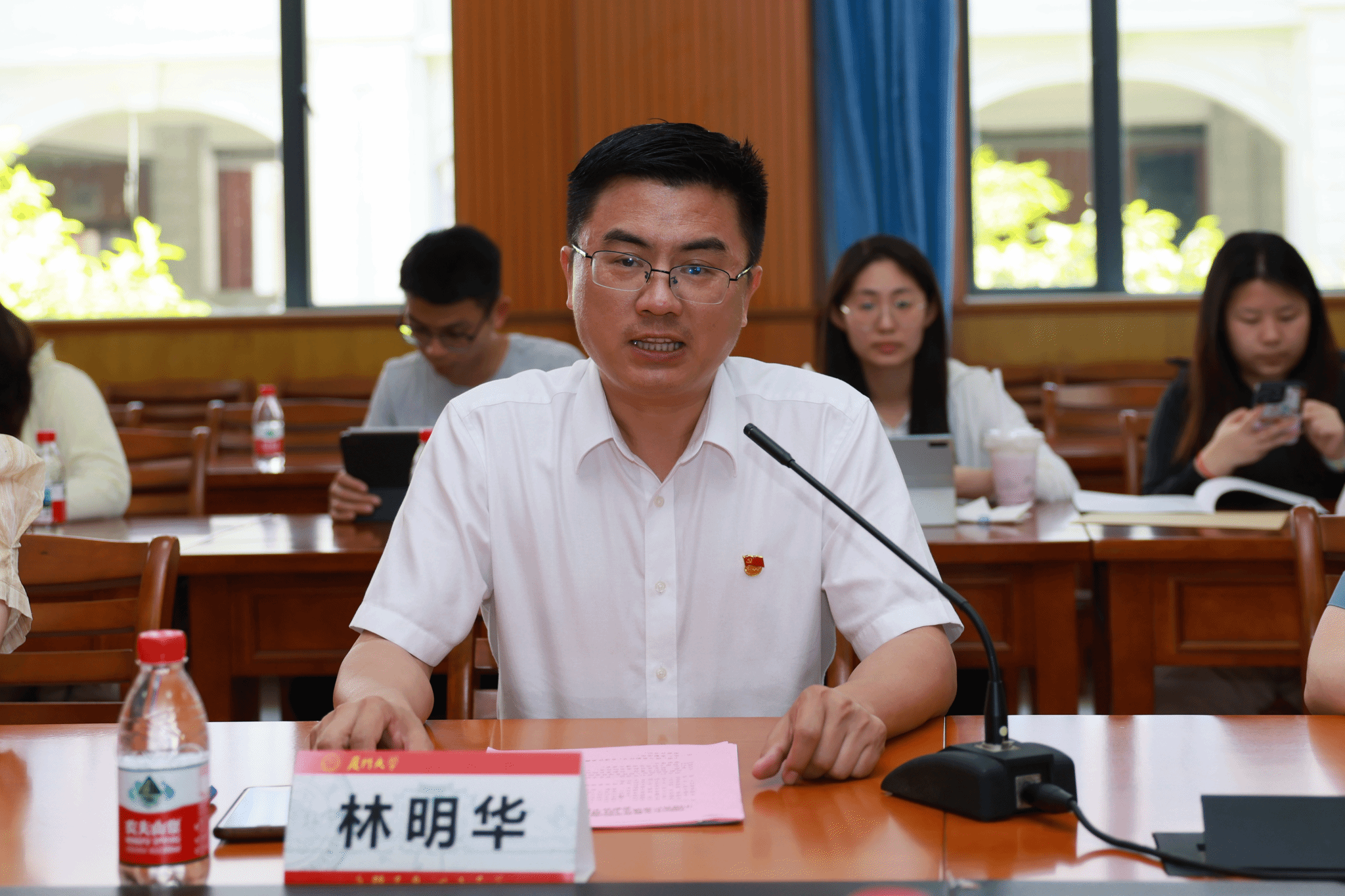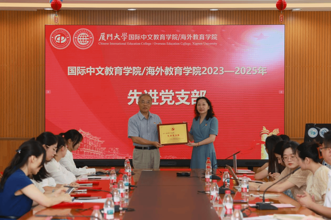 为庆祝中国共产党成立104周年,扎实开展深入贯彻中央八项规定精神学习教育,营造学习先进、崇尚先进、争当先进的良好氛围,6月27日中午,国际中文教育学院/海外教育学院在翔安校区坤銮楼C104会议室召开庆祝中国共产党成立104周年暨“两优一先”表彰会。学院党委委员、全体党支部委员、师生党员、入党积极分子参加。会议由学院党委副书记林明华主持。